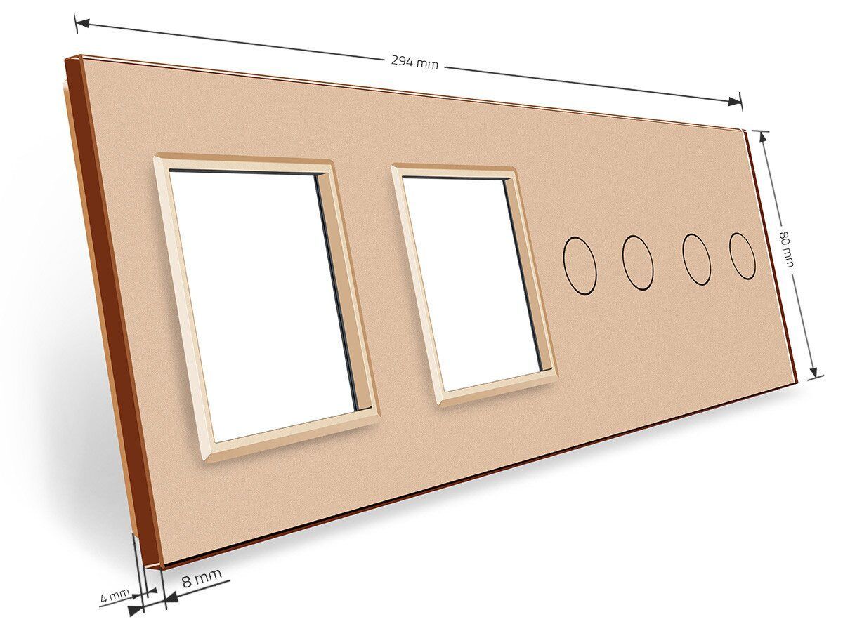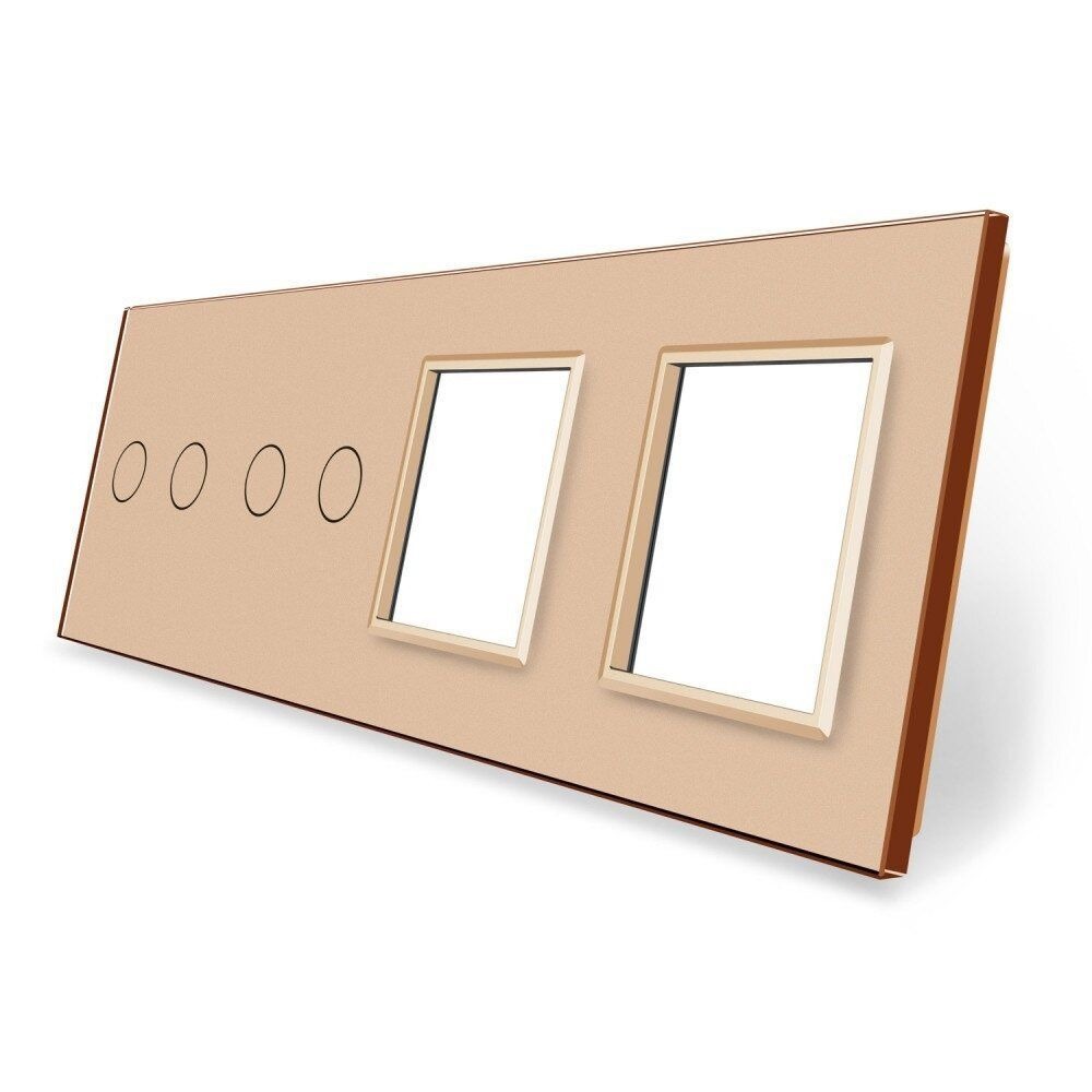 Сенсорна панель вимикача 4 сенсори та дві розетки (2-2-0-0) Glass Livolo C7-C2/C2/SR/SR-13 золото